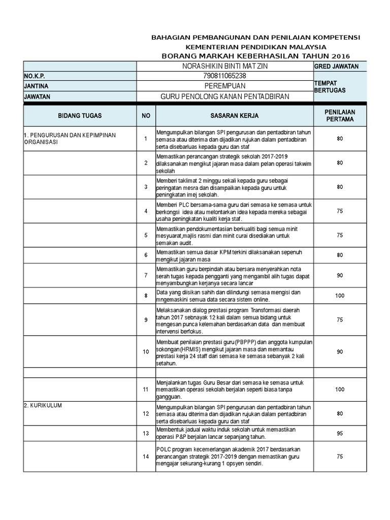 Borang Keberhasilan 2018 Gbk. Kementerian pendidikan malaysia borang markah keberhasilan tahun 2016 gred jawata n.